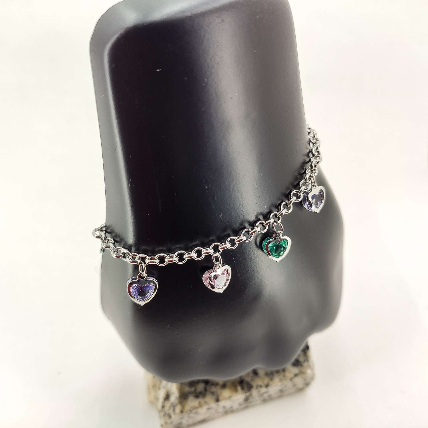 PULSEIRA AÇO 5 CORAÇÕES COM PEDRA
