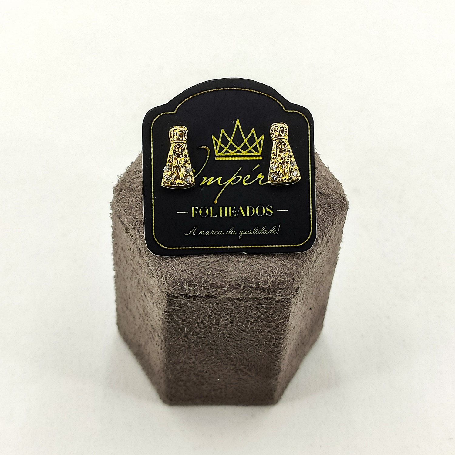 BRINCO NOSSA SENHORA PEDRA BRANCA FOLHEADO