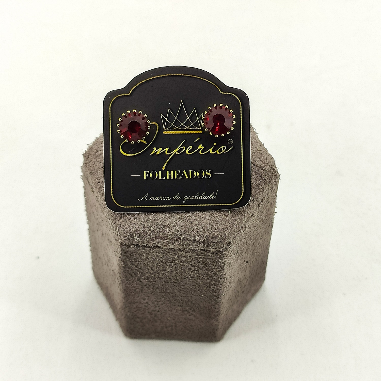 BRINCO FLOR PEDRA VERMELHA FOLHEADO