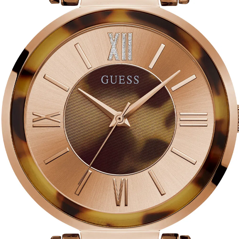 REL PULSO GUESS F CX ACO PU PLAST/ACO DCR-E 2018/17528-3 DESCRIÇÃO E COMPOSIÇÃO Relógio Guess Feminino Aço e Resina Tartatuga W0638L8 92580LPGDRF6 03 ATM Tamanho da Caixa com a Pulseira: 36 mm Espessura da Caixa: 8.70 mm Datador: não Mecanismo: Analógico Material da Caixa: Aço Material do Vidro: Cristal Mineral Cor da Pulseira: Tartaruga Material da Pulseira: Aço Modelo da Caixa: Redonda Cronógrafo: não Cor do Mostrador: Rosé Resistência: 03 ATM Tamanho da Caixa: 36 mm Cor da Caixa: Tartaruga Modelo: W0638L8 92580LPGDRF6 Sugestão: Para ela Cód: GU00000661 Garantia: 12