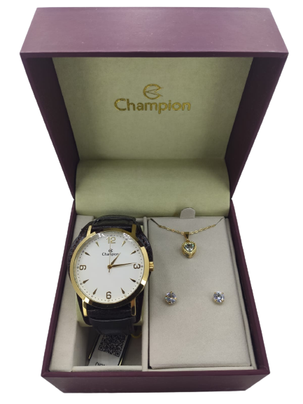 REL PULSO CHAMPION CN20328W Descrições estão no anuncio caso tenha mais alguma duvida utilize o campo de perguntas antes da compra evitando transtornos e cancelamentos. Obrigado Relógio Champion 7891511373416 Elegance Kit CN20328W Colar e brincos sortidos. Mulheres Que Valorizam o Glamour CHAMPION RELÓGIOS. A Champion Relógios desenvolve seus produtos dentro dos principais padrões de qualidade e tecnologia, seguindo as tendências mundiais de moda e estilo, oferecendo coleções exclusivas e inovadoras ao mercado brasileiro. Esses são fatores que movem nossa marca e que ao longo dos anos vem transformando o relógio em um dos principais acessórios de moda e estilo para homens, mulheres e criança. Este produto acompanha: - Manual em Português - Nota Fiscal - Embalagem original - Garantia de 12 meses do Fabricante Descrição: GÊNERO Feminino FORMATO Caixa Redonda FUNÇÕES Analógico RESISTÊNCIA À ÁGUA 5 ATM - Lavar as Mãos: SIM / Usar em Água Corrente: SIM / Usar em Mergulho: NÃO MATERIAL DA CAIXA Aço inoxidável MATERIAL MEDIDA PULSEIRA Couro MEDIDA 22,5 Cm tipo cinto com regulagem para menor VIDRO Cristal Mineral DIÂMETRO DA CAIXA 3,9 cm ESPESSURA DA CAIXA 8,0 mm GARANTIA PELO FORNECEDOR 1 ano OBSERVAÇÃO Acompanha um Lindo Colar e um Par de Brincos modelos sortidos