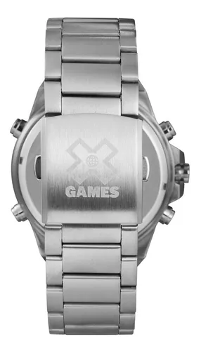 RELOGIO PULSO X-GAMES - XMSSA005 - BXSX Possui mecanismo Analógico/Digital, a pulseira é na cor Prata, fabricada em Aço, com 25 cm de comprimento e possui Fecho Dobrável com Dois Botões. A Caixa (peça onde fica o mostrador) é fabricada em Aço, mede 4,8 cm, sem considerar a coroa, e 1,6 cm de espessura, o que é considerado tamanho Grande para relógios do gênero Masculino. O Relógio X-Games Masculino XMSSA005 BXSX tem nível de resistência à água especificado em 10 ATM. Com relação as funções adicionais do relógio: possui Calendário Digital, Cronômetro Digital, Não Possui Alarme, Não Possui Timer, Aviso de Hora Cheia (Função Chime), Iluminação de Fundo.