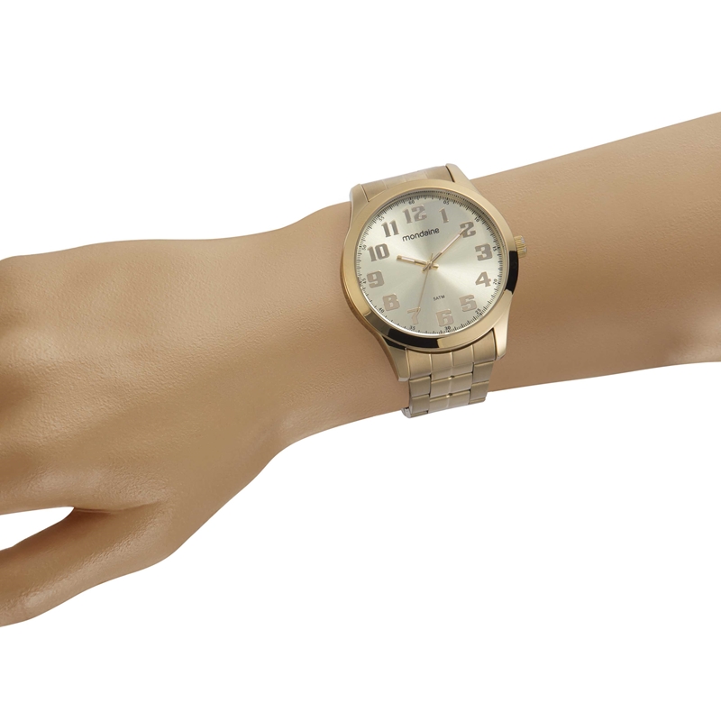 REL PULSO MONDAINE 99195GPMVDE4 Referência/SKU: 99195GPMVDE4 Formato da Caixa: Redondo Marcas: Mondaine Gênero: Masculino Cor: Dourado Tamanho da Caixa: Grande Material da Pulseira: Aço Mecanismo: Analógico Comprimento do Relógio: 26 cm Pulseira Ajustável: Sim Material da Caixa: Metal Espessura da Caixa: 1,1 cm Dimensões da Caixa: 4,8 cm de diâmetro Material do Vidro: Cristal Mineral Nível de Resistência à Água: 5 ATM Calendário: Não tem Calendário Cronômetro: Não Possui Cronômetro Alarme: Não Possui Alarme Iluminação Noturna Marcadores com Illuminator Fornecedor: Seculus da Amazônia Indústria e Comércio SA. CNPJ: 34.516.088/0001-10 Prazo de Garantia: Garantia de 1 Ano com o Fornecedor O que Acompanha o Produto Estojo Original, Acessórios Originais (correspondentes a cada modelo), Manual em Português, Certificado de Garantia do Fabricante.