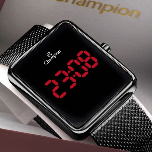 REL PULSO CHAMPION METAL PRETO CH40080D - Marca: Champion - Gênero: Feminino - Mecanismo: Digital - Alimentação: Bateria - Composição do Vidro: Cristal Mineral - Material da Caixa: Metal - Material da Pulseira: Aço inoxidável - Tampa Fundo: Rosqueado - Largura da Caixa: 4,3 cm - Altura da Caixa: 3,7 cm - Espessura da Caixa: 1,0 cm - Resistência à Água: 50 metros - Prazo de Garantia: 12 meses (Rede de autorizadas)