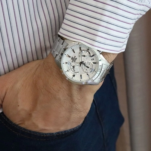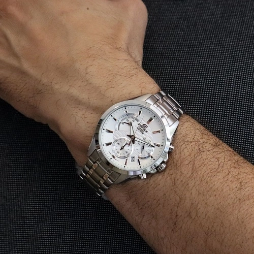 REL PULSO CASIO EDIFICE EFV-580D-7AVUDF vamos conhecer melhor O relógio? Informações Básicas Marca: Casio Referencia: EFV-580D-7AVUDF Gênero: Masculino Características Composição do Vidro: Cristal Mineral Material da Caixa: Aço Inox Material da Pulseira: Aço Inox Modelo: Analógico Mecanismo: Quartz Alimentação: Bateria Resistência à Água: 10 atm Diâmetro da Caixa: 5,0 cm Tamanho da caixa: 5143,812,4mm Peso: 141 g Funções Especiais Cronômetro de 1 segundo Capacidade de medição: 9'59 Visor de data Horário regular Analógico: 3 ponteiros (hora, minuto, segundo) 3 mostradores (minutos, segundos e 24 horas do cronômetro) Precisão: 20 segundos por mês Duração aprox. da bateria: 3 anos com SR920SW