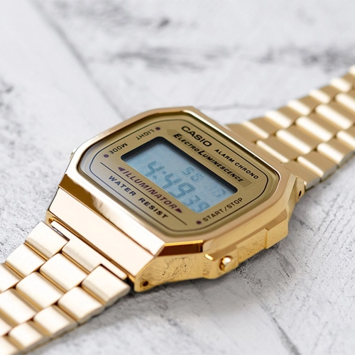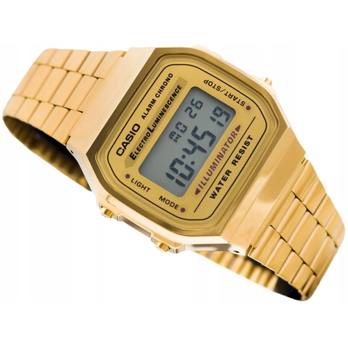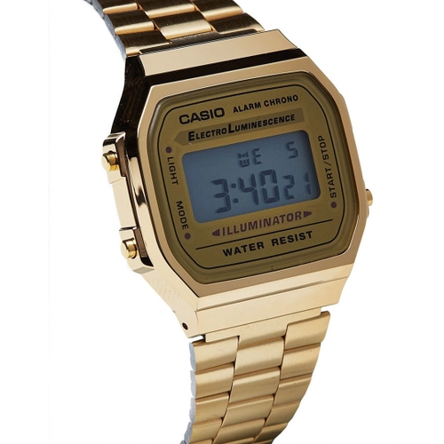 REL PULSO CASIO VINTAGE A168WG-9WDF Informações Básicas Marca: Casio Referencia: A168WG-9WDF Gênero: Unissex Características Composição do Vidro: Resina Material da Caixa: Resina Material da Pulseira: Aço Inoxidável Modelo: Digital Mecanismo: Quartz Alimentação: Bateria Resistência à Água: 3atm Diâmetro da Caixa: 38,636,39,6mm Peso total: 49g Funções Especiais: Fundo luminoso eletroluminescente Cronômetro de 1/100 de segundo Capacidade de medição: 59'59.99" Modos de medição: tempo transcorrido, divisão de tempo, tempos do 1º e 2º lugares Alarme diário Sinalização a cada hora Calendário automático (fevereiro com 28 dias) Formatos de 12/24 horas Horário regular: hora, minuto, segundo, pm, data, dia Precisão: 30 segundos por mês Duração aprox. da bateria: 7 anos (CR2016)