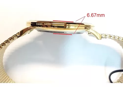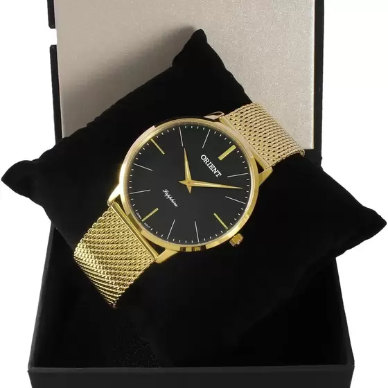 REL PULSO ORIENT - MGSSS005 P1KX Relógio Masculino Orient Slim Mgsss005 P1Kx Safira Dourado O Relógio é um dos acessórios mais presentes em todas as fases da nossa vida, mesmo com inúmeros dispositivos modernos que mostram as horas, o clássico relógio para pulso não perdeu seu charme e é uma ótima opção para complementar o visual. O Relógio Masculino Orient Slim Mgsss005 P1Kx Safira Dourado é perfeito para uso pessoal ou para presentear alguém especial em uma data comemorativa, sendo um presente único, de ótimo gosto, elegância e muita praticidade. Produzido com materiais resistentes e de qualidade, a peça reúne sofisticação e estilo em um único item. A escolha perfeita para homens elegantes, que gostam de ter um acessório que complemente o look em qualquer ocasião. Características: Marca: ORIENT Slim Modelo: Mgsss005 P1kx Categoria: Masculino Coleção / Linha Tamanho: Grande Funções : Analógico Características Sistema de energia: Bateria Coroa: Simples Tampa posterior: Pressão Resistência à água: 30M Vidro: Safira Mostrador: Preto com detalhes dourado Material da caixa: Aço Inox dourado Material da pulseira: Aço Inox tipo esteira dourada Medidas Diâmetro da caixa: 4cm Espessura da caixa: 0,6cm Acompanha Nota Fiscal Manual Embalagem Original Certificado de garantia de 1 ano